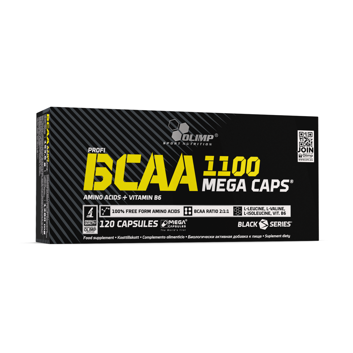 Olimp BCAA 1100 120 kapsulas. BCAA (leicīns, izoleicīns, valīns) palīdz aizsargāt muskuļu masu slodzes laikā un veicina ātrāku atjaunošanos. Piemērots lietošanai pirms slodzes, tās laikā vai pēc tās.