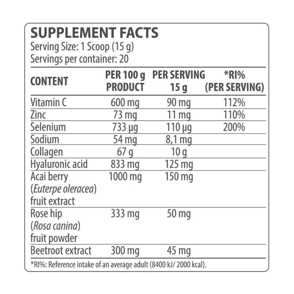 DY Collagen Complex 300g kolagēna kompleksa pulveris ir sajaukts ar citām sastāvdaļām, kas kopā sniedz pozitīvu kopējo iedarbību gan uz locītavām un saistaudumiem, gan uz muskuļiem un ādu.