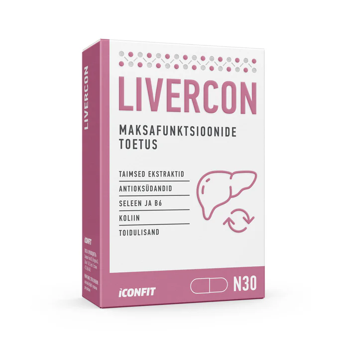 ICONFIT LIVERCON ir kompleksa produkta, kas izstrādāts, lai atbalstītu vienas no svarīgākajām ķermeņa orgānu funkcijām – aizsērēs. Produkts satur augu ekstraktus, antioksidantus, kolīnu, vitamīnu B6 un selēnu.