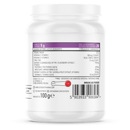 OstroVit Pharma Immune Aid apvieno sešus imunitāti atbalstošus sastāvdaļus — Vitamīnu C, Vitamīnu D3, cinku, inulīnu, zāritekļu ekstrakt un acerolas ķeršu ekstrakt — ērtā pulverī ar avošu garšu. Inulīns darbojas kā prebiotiks, uzturot labās zarnu baktērijas. Pieejams Omegafit.ee interneta veikalā no Pērnavas, Igaunijā, piegāde 1-2 dienās uz Latviju.