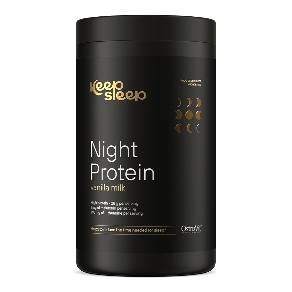 OstroVit Keep Sleep Night Protein ir unikāls proteīnu maisījums, kas apvieno 28 g augstvērtīga proteīna ar miegu atbalstošām sastāvdaļām — melatonīnu, mio-inazolu, L-teanīnu un magnēziju. Tas ir izstrādāts tiem, kuri meklē gan muskuļu atbalstu, gan kvalitatīvu miegu. Pieejams Omegafit.ee interneta veikalā no Pērnavas, Igaunijā, piegāde 1-2 dienās uz Latviju.