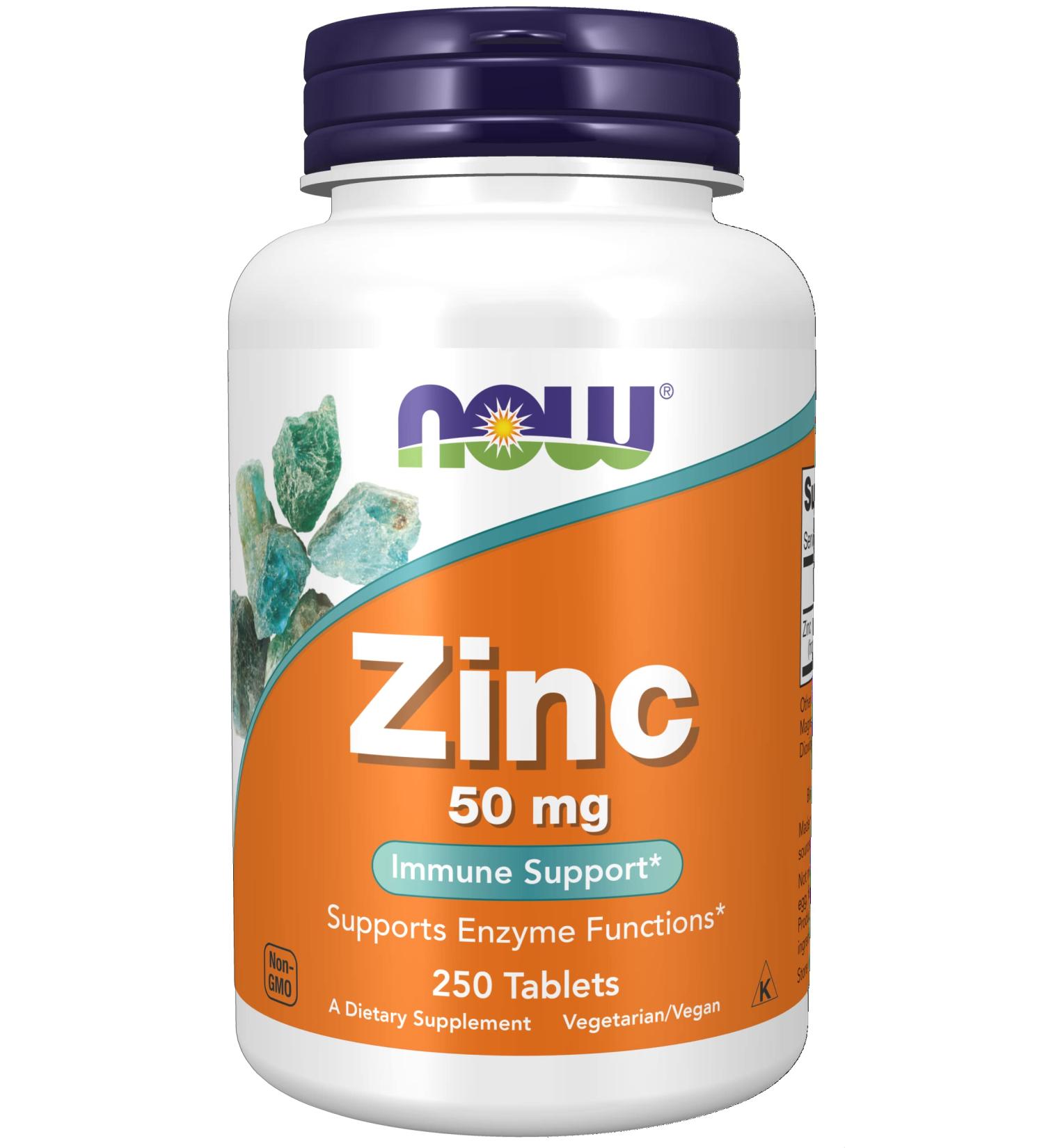 NOW Zinc 50mg nodrošina augstas iedarbības cinka uztura bagātinātāju tablešu veidā, lai atbalstītu imūnsistēmas darbību, testosterona ražošanu un brūču dzīšanu.