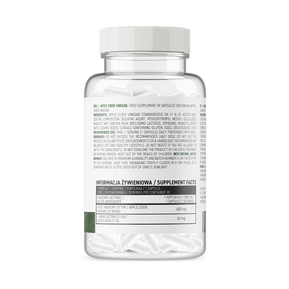OstroVit ābolu sidra etiķis VEGE 90 kapsulas – ir augstas kvalitātes uztura bagātinātājs, kas ir ābolu sidra etiķa avots, kura etiķskābes saturs ir standartizēts līdz 11%. Tas ir vegāniem piemērots preparāts, kas pieejams viegli norijamu kapsulu veidā un radīts cilvēkiem, kuriem rūp veselīgs un skaists izskats un kuri vēlas papildināt savu ikdienas uzturu ar vērtīgu savienojumu.