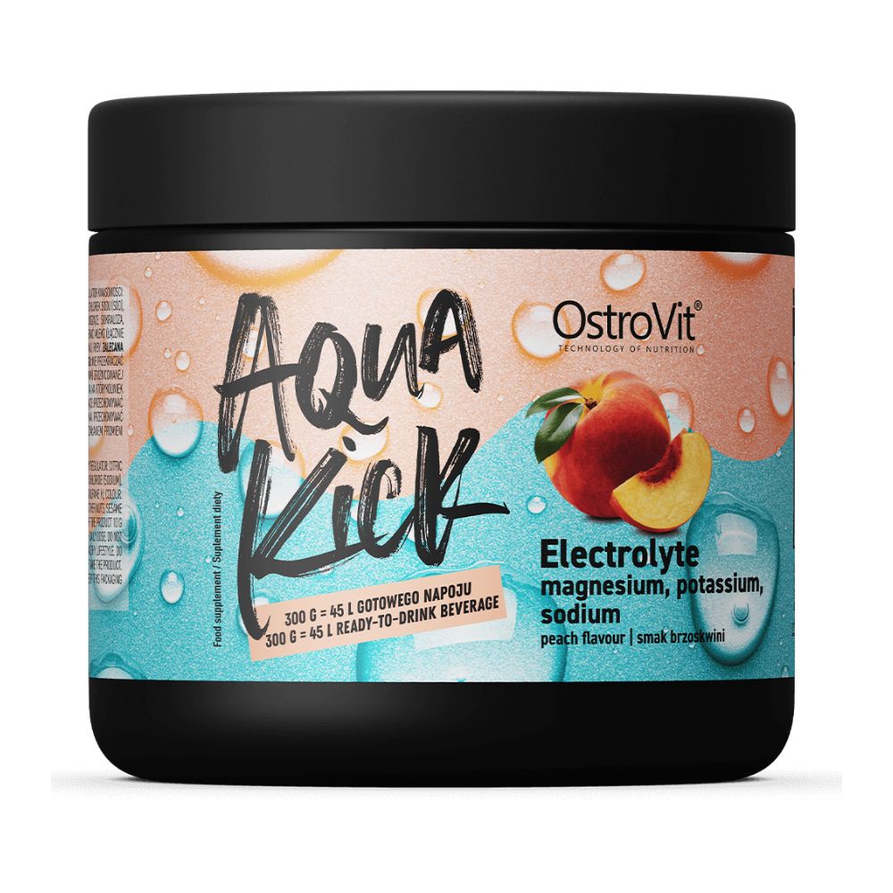 Ar OstroVit Aqua Kick Electrolyte šis uztura papildinājums piedāvā ērtu risinājumu ātram un efektīvam elektrolītu papildināšanai. Tā vienmērīga persika garša un viegli lietojama pulverforma nodrošina vienkāršu veidu, kā visu dienu uzturēt piemērotu šķidras uzņemšanu un elektrolītu līdzsvaru.Uztura papildinājums satur trīs galvenos elektrolītus:
