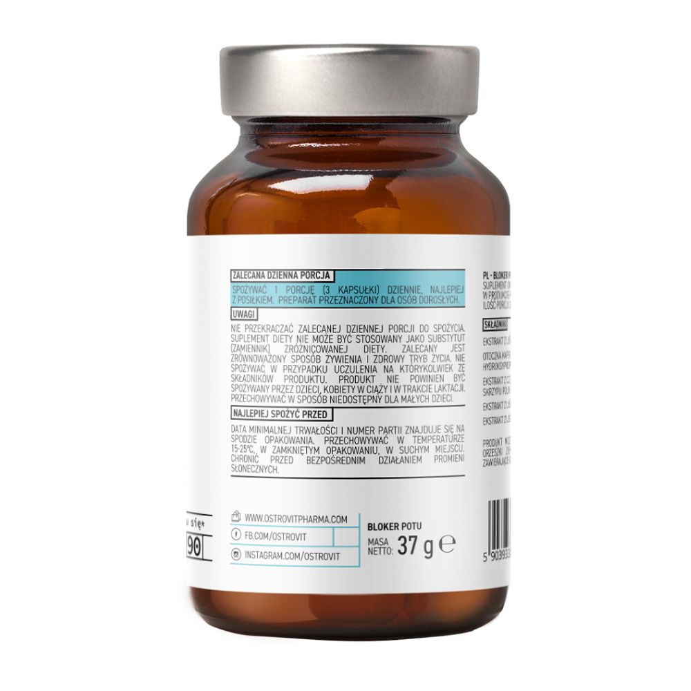 OstroVit Sweat Blocker 90 kapsules ir prēmija līnia Pharma uztura papildinājums, kas satur četrus augu ekstraktus, lai samazinātu pārmērīgu svidrošanu. Formula satur sālspāri, kušņaino astilbi, taukains un melisas ekstrakta, nodrošinot 30 dienu lietošanas daudzumu. Pieejams Omegafit.ee interneta veikalā no Pērnavas, Igaunijā, piegāde 1-2 dienās uz Latviju.