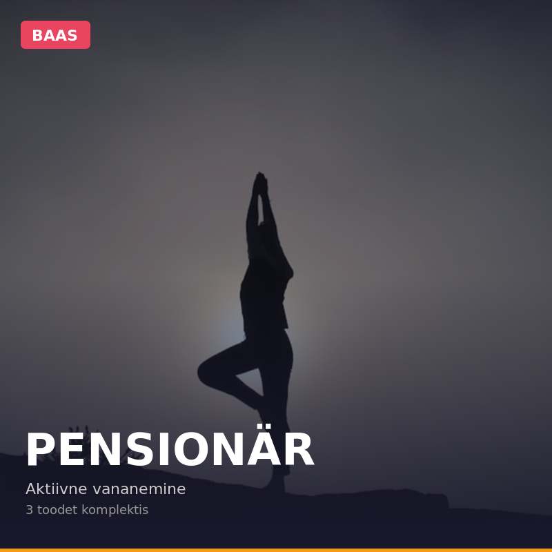 Pamata komplekts senioriem, kas ietver trīs uztura papildinājumus veselības atbalstam vecumā. Sastāv no kolagēna kafijas augstinām līdzekļa locītavām, Vitamīna D3 kauliem un Koenzīma Q10 sirdzimtei. Pieejams Omegafit.ee interneta veikalā no Pērnavas, Igaunijā, ar piegādi 1-2 dienās uz Latviju, Igauniju, Somiju un Lietuvu.