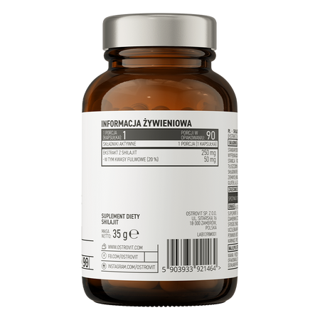 - 250 mg šilajita ekstrakta vienā porcijā (20% fulvskābju)